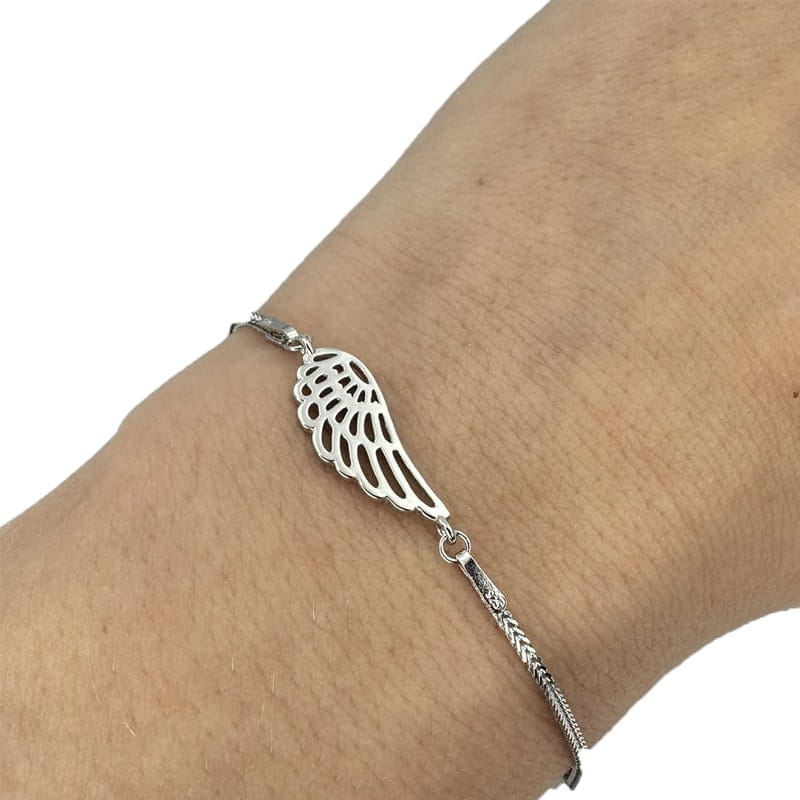Piękna bransoletka wykonana ze srebra próby 925, z delikatnym motywem skrzydła.