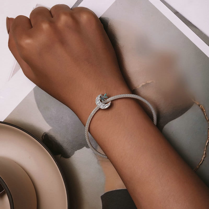 Podaruj swojej bransoletce odrobinę nocnego uroku z naszym charmsem – księżyc z ważką. Ten mistyczny charms, idealnie pasujący na bransoletki tylko, łączy w sobie tajemniczość księżyca i delikatność ważki. Jego unikalny design przedstawia elegancką ważkę spoczywającą na półksiężycu, symbolizując marzenia i transformację. Wykonany z wysokiej jakości materiałów, ten charms jest nie tylko pięknym dodatkiem, ale także inspirującym elementem Twojej biżuterii. Dodaj go do swojej kolekcji, by każdego dnia cieszyć się jego magicznym blaskiem.