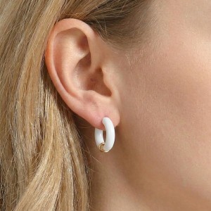 Wybierz nasze kolczyki damskie Białe Kółka i podkreśl swój styl subtelną elegancją – mleczny odcień, złote wykończenie i wygodne zapięcie typu hoop w jednym wyjątkowym dodatku!