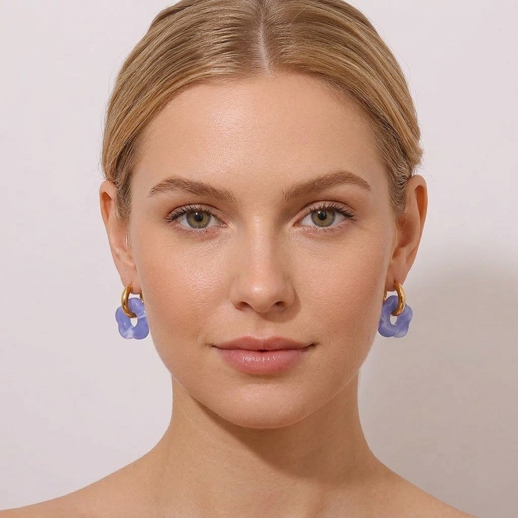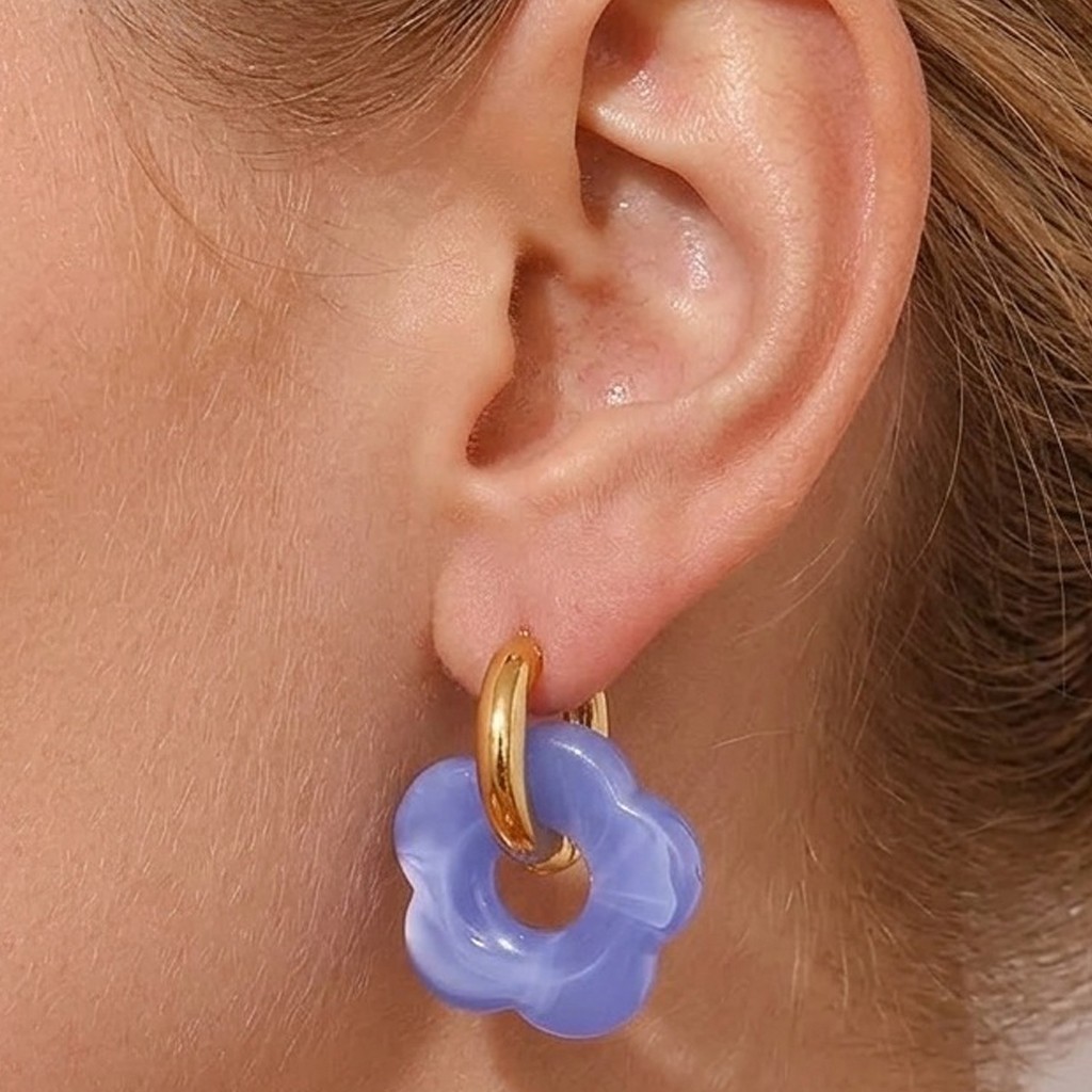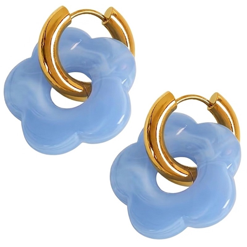Złote kółka w połączeniu z akrylowym kwiatkiem tworzą spójną i estetyczną całość. Kolczyki pozłacane Błękitny Kwiatek to połączenie trwałości, wygody oraz wyjątkowego wzornictwa inspirowanego naturą.