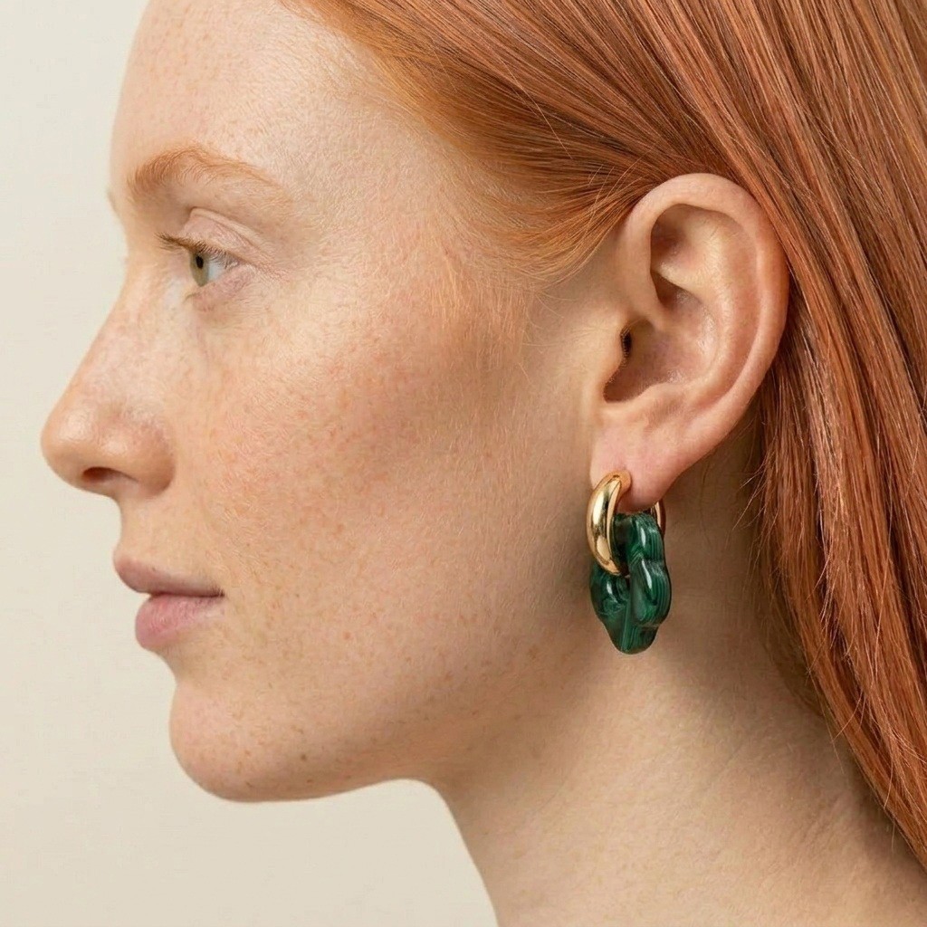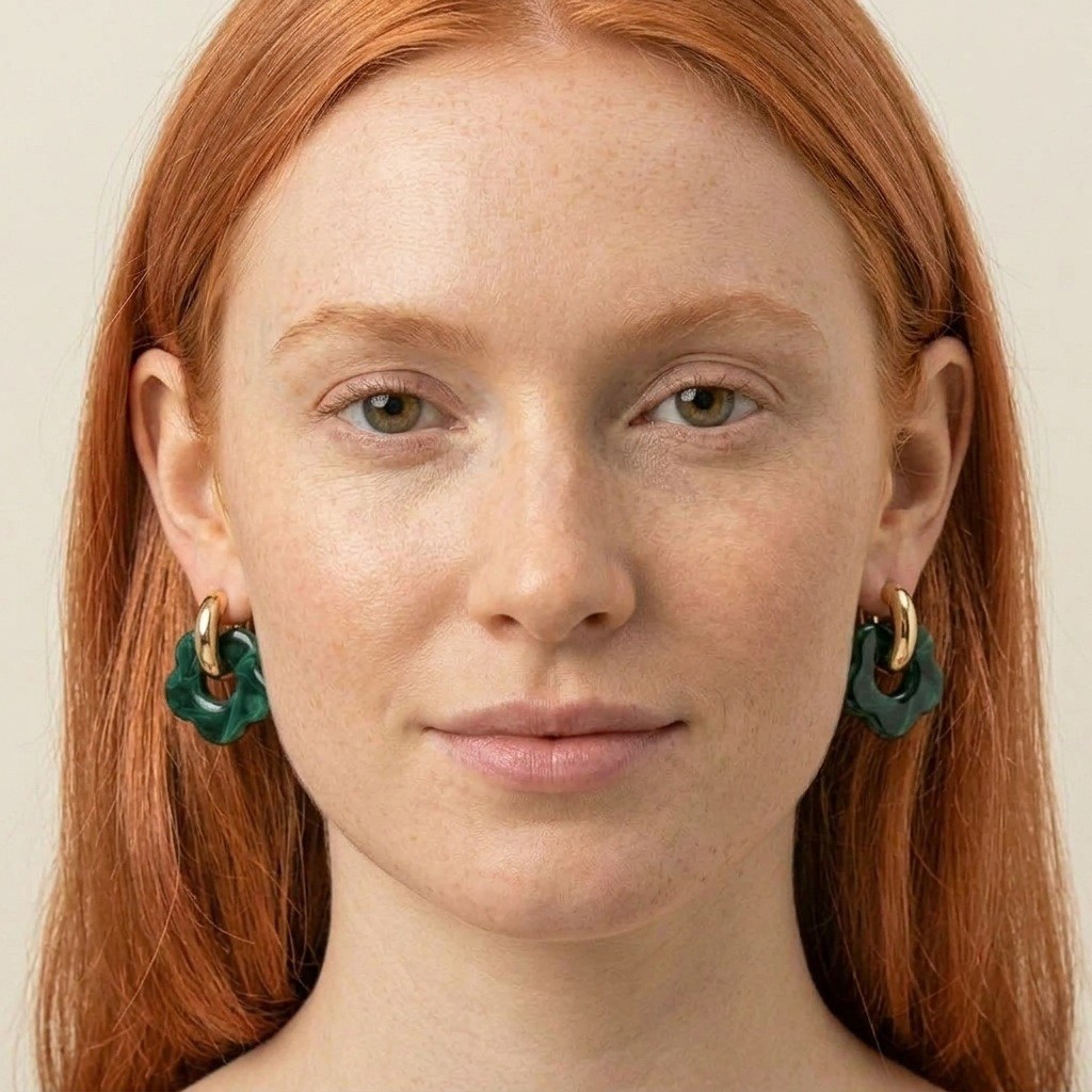 Ciemna zieleń symbolizuje harmonię, elegancję oraz bliskość natury, dlatego kolczyki damskie w tym odcieniu doskonale podkreślają styl i dodają stylizacji wyrafinowanego charakteru. Kwiatowy motyw nadaje biżuterii lekkości i kobiecego wdzięku, natomiast głęboki kolor sprawia, że kolczyki wyróżniają się na tle klasycznych dodatków. Połączenie złota z intensywną zielenią tworzy niezwykle elegancką i modną kompozycję, która doskonale wpisuje się w aktualne trendy.