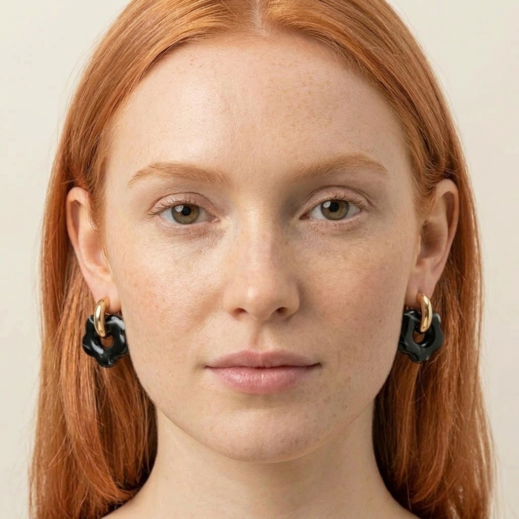 Czarny kolor od lat symbolizuje elegancję, tajemniczość i ponadczasowy styl. Dzięki temu kolczyki damskie w tym odcieniu doskonale podkreślają charakter stylizacji i dodają jej wyrafinowanego wykończenia. Kwiatowy motyw nadaje biżuterii lekkości i kobiecego uroku, natomiast głęboka czerń sprawia, że kolczyki są bardziej wyraziste i przyciągają uwagę. Połączenie złota z czarnym kwiatem tworzy kontrastową, niezwykle elegancką kompozycję, która świetnie wpisuje się w aktualne trendy.