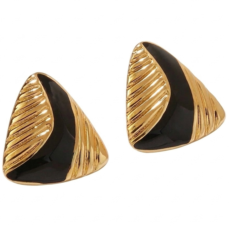 Kolczyki Czarny Trójkąt - Stal Szlachetna Pozłacane