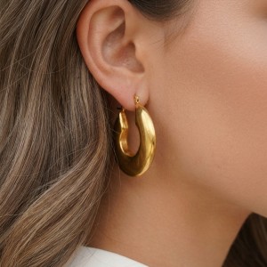 Te kolczyki damskie zostały zaprojektowane z myślą o kobietach, które kochają klasyczne formy w nowoczesnym wydaniu. Duży rozmiar sprawia, że kolczyki przyciągają uwagę i nadają stylizacji charakteru, nie wymagając dodatkowych ozdób. Zapięcie na sztyft zatrzaskowy umieszczone u góry zapewnia komfort oraz bezpieczeństwo noszenia, dzięki czemu kolczyki są stabilne i wygodne nawet przez wiele godzin. Kolczyki pozłacane ze stali szlachetnej są odporne na zarysowania i utratę koloru, co gwarantuje ich trwałość i piękny wygląd na długo. Doskonale komponują się z klasyczną koszulą, elegancką marynarką, a także z wieczorową sukienką, tworząc spójną i stylową całość.