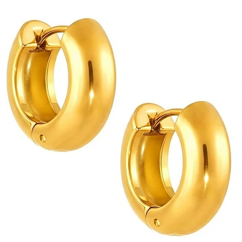 Model w rozmiarze L to propozycja dla kobiet, które lubią bardziej wyrazistą biżuterię. Szerokie kółka przyciągają uwagę i pięknie podkreślają rysy twarzy, dodając stylizacji elegancji i nowoczesnego charakteru. Złota powierzchnia delikatnie odbija światło, dzięki czemu kolczyki prezentują się niezwykle efektownie. Te kolczyki damskie stanowią idealne połączenie klasyki i współczesnego stylu – są modne, eleganckie i bardzo uniwersalne.