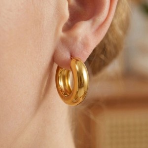 - Duże kolczyki pozłacane w formie kółek to biżuteria, która doskonale komponuje się z różnymi stylizacjami.