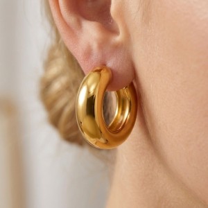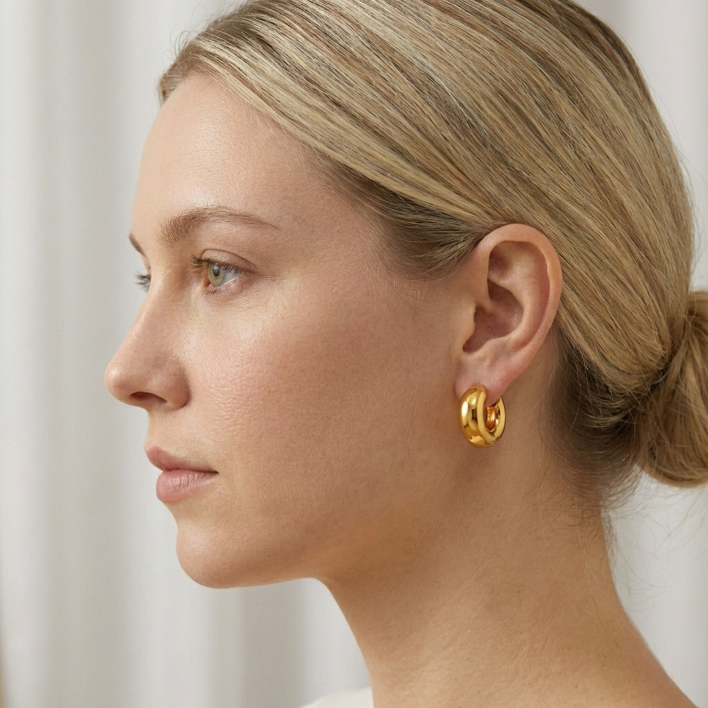 Model w rozmiarze M to idealne rozwiązanie dla kobiet, które szukają biżuterii wyrazistej, ale nadal subtelnej i eleganckiej. Szeroka forma kółek nadaje kolczykom nowoczesnego charakteru, a złota powierzchnia pięknie odbija światło, dzięki czemu biżuteria przyciąga uwagę delikatnym blaskiem. Te kolczyki damskie doskonale podkreślają linię twarzy i stanowią stylowy akcent każdej stylizacji.