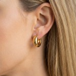 Szeroka konstrukcja kółek nadaje biżuterii nowoczesnego wyglądu, a złota powierzchnia subtelnie odbija światło, dzięki czemu kolczyki przyciągają uwagę delikatnym blaskiem. Kolczyki damskie w tej formie to idealny wybór dla kobiet, które cenią prostotę i stylową elegancję. Ich ponadczasowy design sprawia, że nigdy nie wychodzą z mody i stanowią doskonały element każdej kolekcji biżuterii.