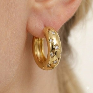 Wybierz nasze kolczyki damskie Kółka i postaw na złotą biżuterię z gwiazdkowym akcentem – połączenie klasycznej formy i delikatnego blasku, które podkreśli Twój styl każdego dnia!