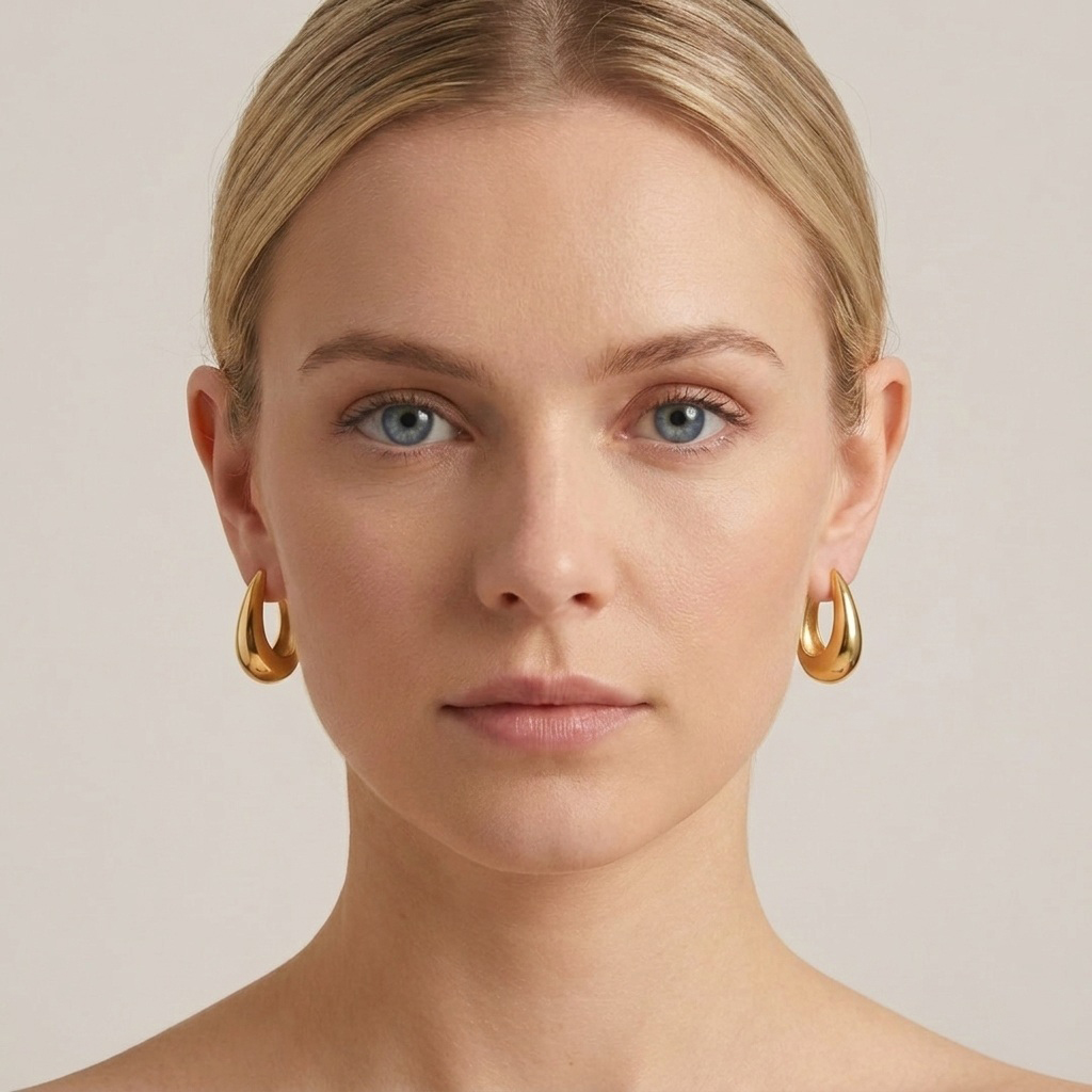 - Ich geometryczny kształt nadaje stylizacji nowoczesnego charakteru, a złoty kolor dodaje elegancji i subtelnego luksusu.