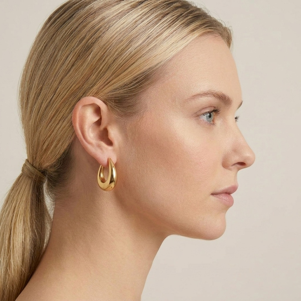 Te kolczyki damskie doskonale podkreślają linię twarzy i stanowią elegancki akcent każdej stylizacji. Ich nowoczesna forma sprawia, że pasują zarówno do minimalistycznych, jak i bardziej wyrazistych zestawów. To biżuteria, która łączy klasyczną elegancję z modnym, geometrycznym designem.