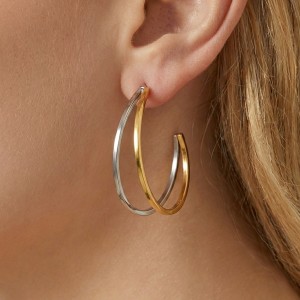 Te eleganckie kolczyki damskie zostały zaprojektowane z myślą o kobietach ceniących nowoczesne, a zarazem uniwersalne dodatki. Otwarta forma litery C nadaje kolczykom lekkości, a podwójna konstrukcja dodaje im głębi i oryginalności. Połączenie złota i srebra pozwala na swobodne łączenie biżuterii w różnych kolorach, bez obaw o niespójność stylizacji. Zapięcie na sztyft zapewnia komfort i stabilność noszenia, dzięki czemu kolczyki doskonale sprawdzą się zarówno w codziennych stylizacjach, jak i podczas eleganckich wyjść. Kolczyki pozłacane wykonane ze stali szlachetnej są odporne na zarysowania i utratę koloru, co gwarantuje ich piękny wygląd przez długi czas.