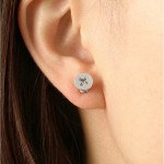 Model wyposażony jest w praktyczne zapięcie na sztyft zakręcany, które zapewnia stabilność oraz bezpieczeństwo podczas noszenia. Dzięki temu kolczyki damskie nie tylko dobrze trzymają się ucha, ale również tworzą charakterystyczny efekt wizualny – wyglądają tak, jakby śruba przechodziła przez ucho na wylot.