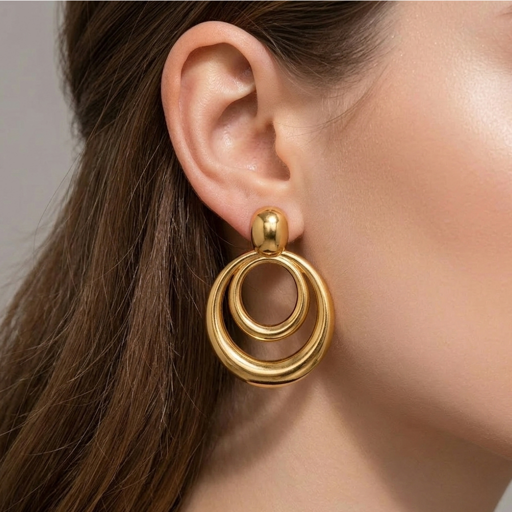 Wybierz nasze kolczyki damskie Podwójne Koła i postaw na biżuterię, która łączy nowoczesną geometrię z klasycznym złotym blaskiem – stylowy detal, który przyciąga spojrzenia i dodaje charakteru każdej stylizacji!