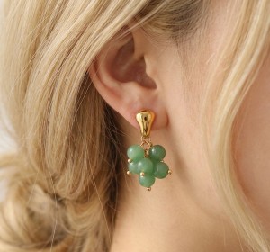 Kolczyki Zielone Winogrono - Stal Szlachetna Pozłacane