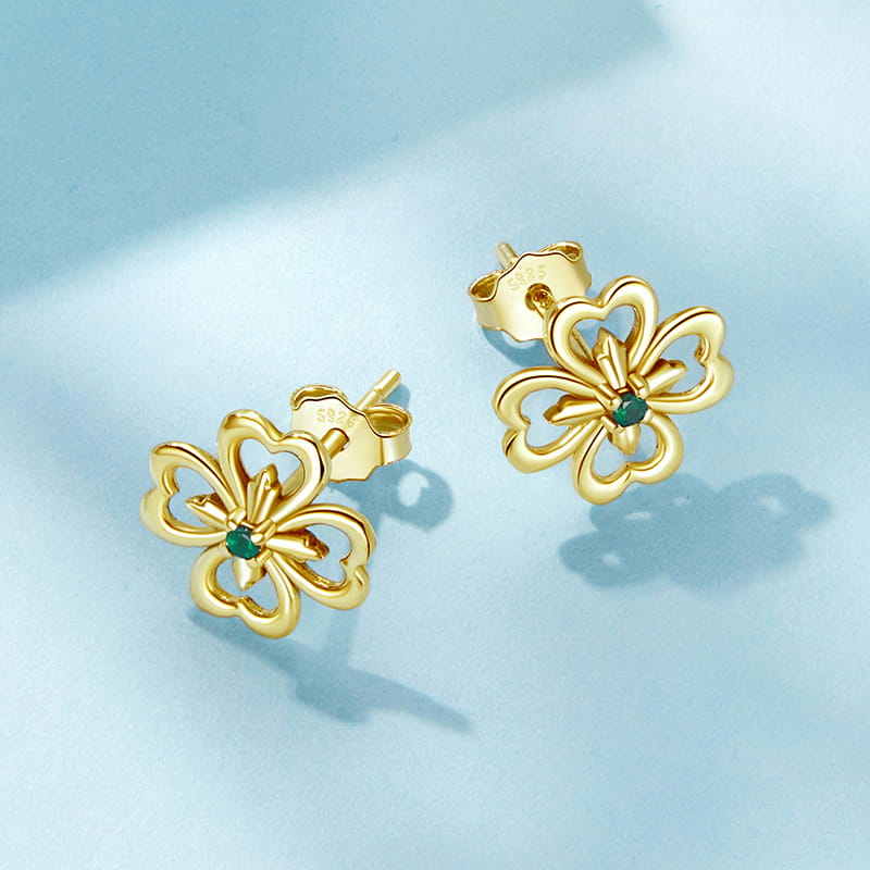 - Postaw na kolczyki damskie Koniczynka i noś przy sobie odrobinę szczęścia każdego dnia – w eleganckiej, pozłacanej oprawie, która nigdy nie wyjdzie z mody.