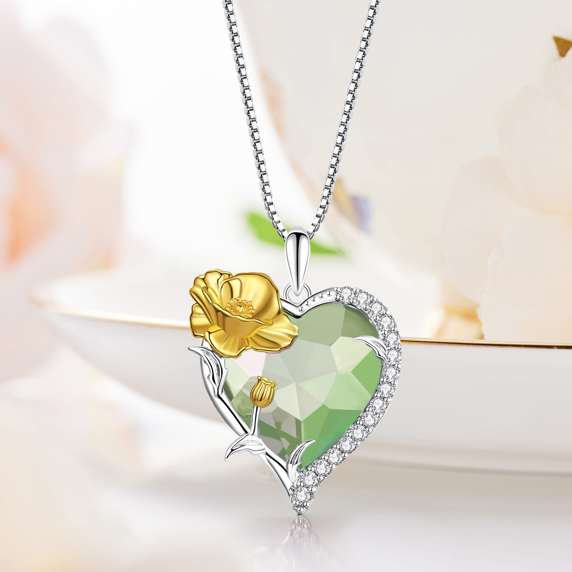 Piękny, wyjątkowy naszyjnik wykonany z najwyższej próby srebra 925.Serce zdobione jest błyszczącymi cyrkoniami klasy AAA oraz kamieniem urodzinowym imitującym kamień szlachetny, przypisany do konkretnego miesiąca.