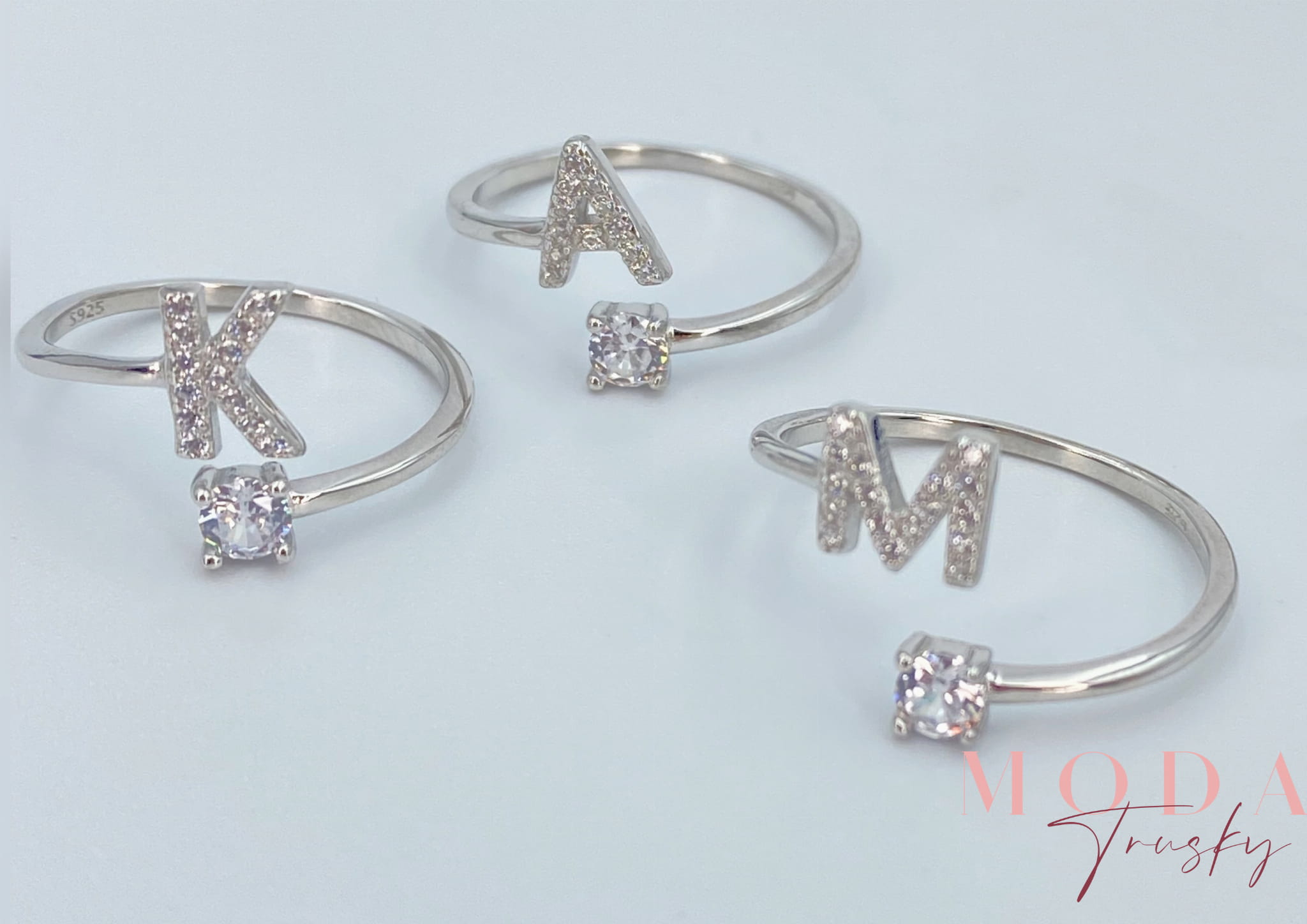 Wyjątkowy pierścionek został wykonany ze srebra najwyższej próby 925. Pierścionek ozdobiony jest okrągłą cyrkonią oraz literką A wysadzaną drobnymi cyrkoniamii najwyższej jakości.