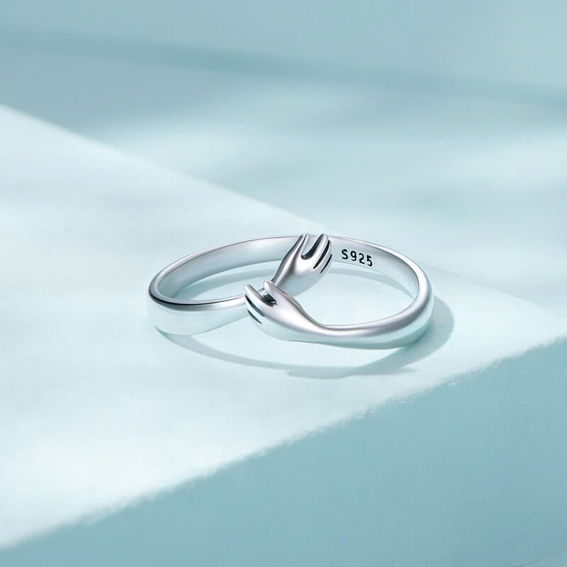 Pierścionek został wykonany ze srebra najwyższej próby 925. Pierścionek przedstawia splecione ręce.